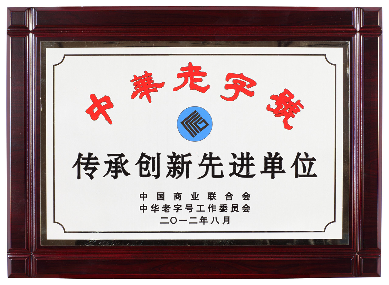 中华老字号-传承创新先进单位 中国商业联合会、中华老字号工作委员会 2012-08-01 永久
