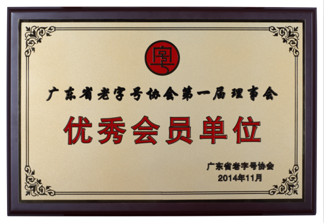广东省老字号协会第一届理事会优秀会员单位 广东省老字号协会 2014-11-01 永久
