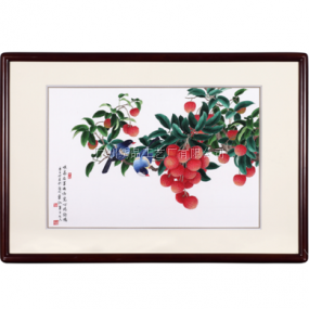 • 广绣《欢欣-扇型荔枝》96x55cm