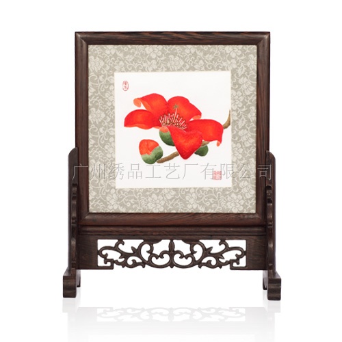 100%纯手工刺绣礼品,座架材质为鸡翅木